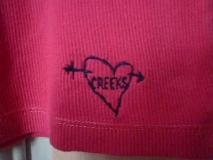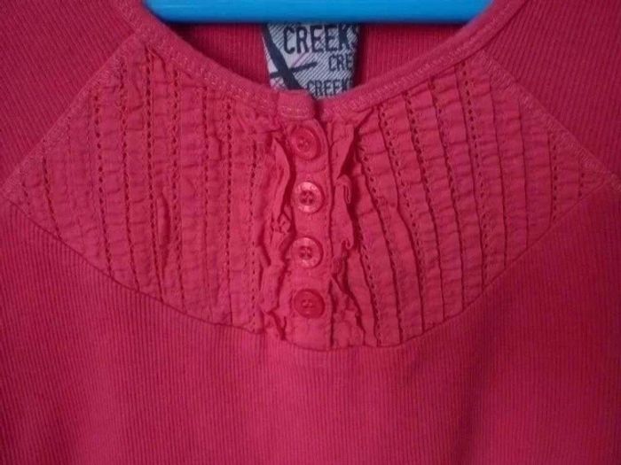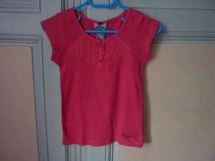 t shirt fille manches courtes Creeks 12 ans très bon état . Joli plastron volanté . Broderie en bas. Couleur framboise #teeshirtfille12ans #fille12ans