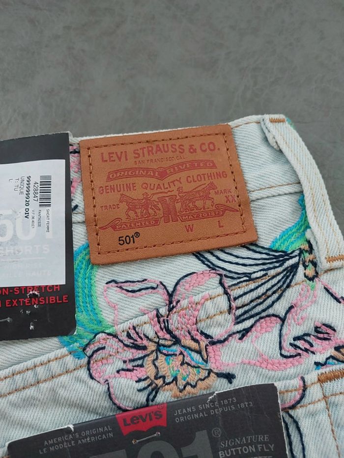Joli short brodé Levi's 501 , original . Taille américaine 24 , correspond à une taille 34 . Neuf avec étiquette. Valeur d'achat : 139 €