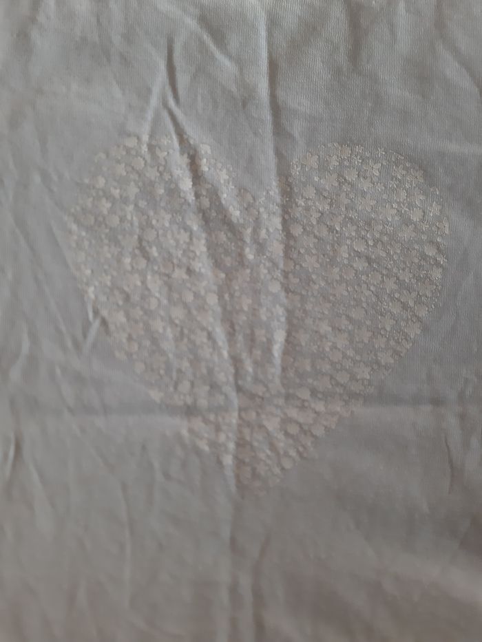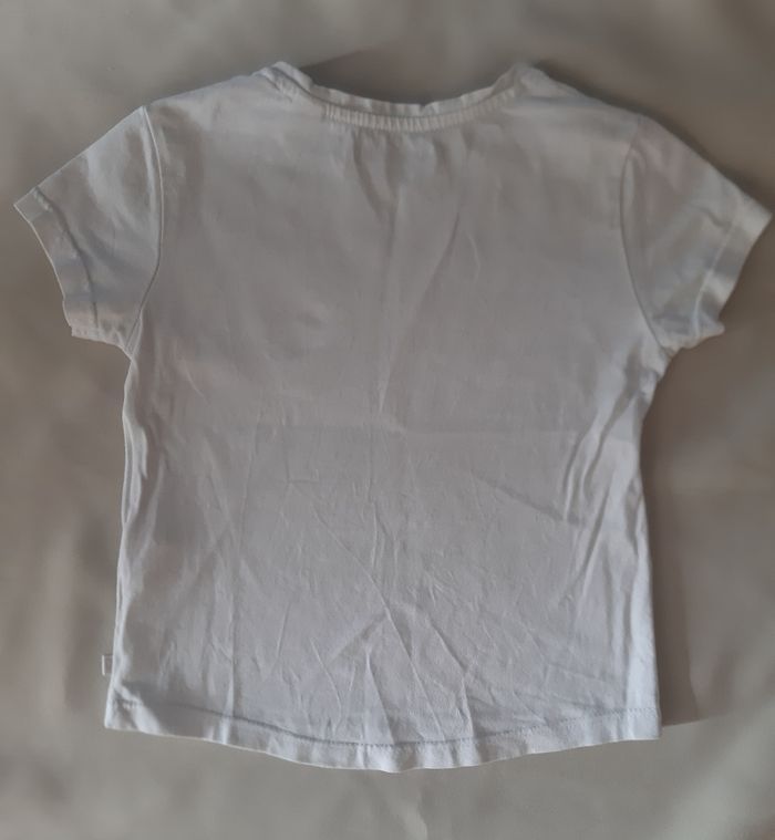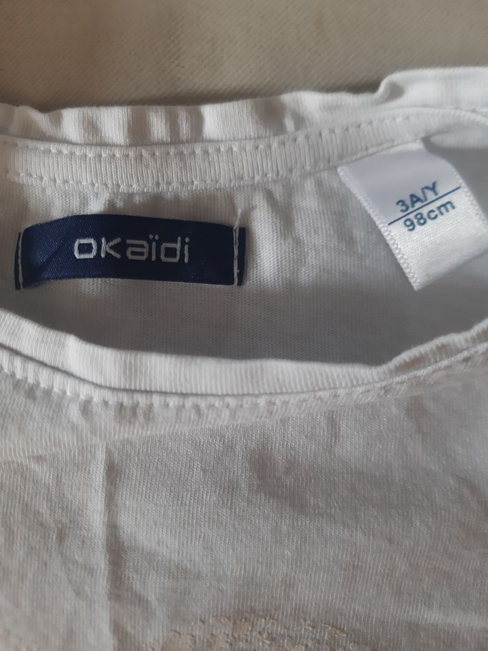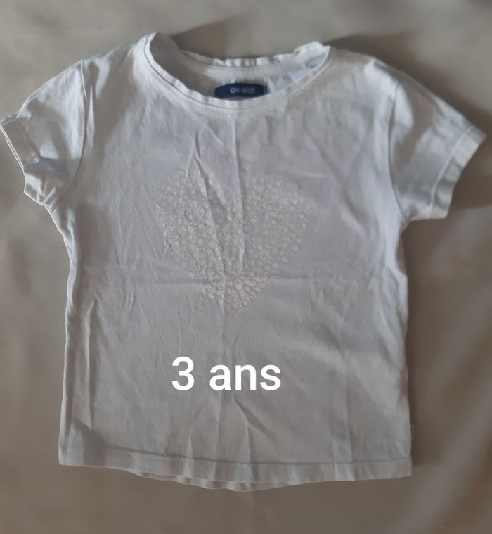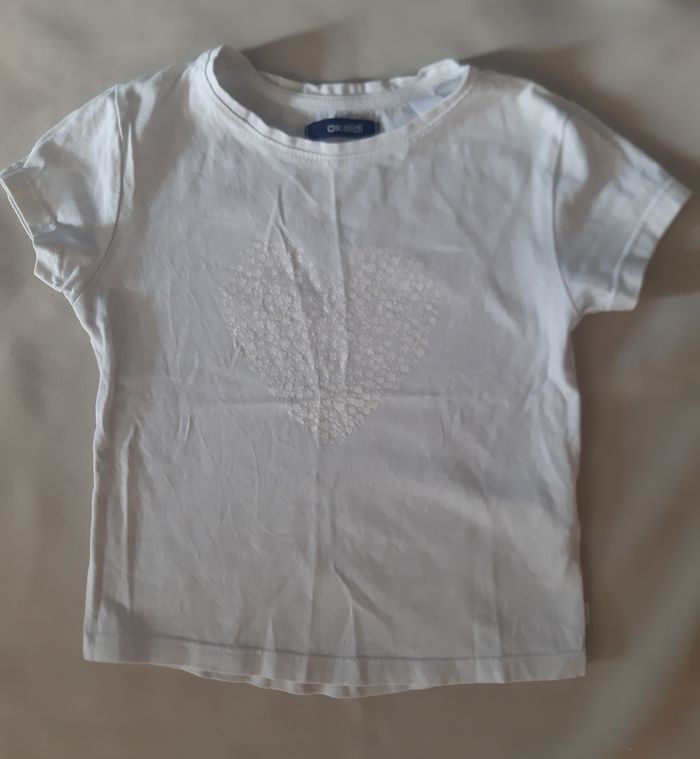 tee-shirt à manches courtes blanc, de la marque okaïdi, en taille 3 ans motif : cœur En très bon état