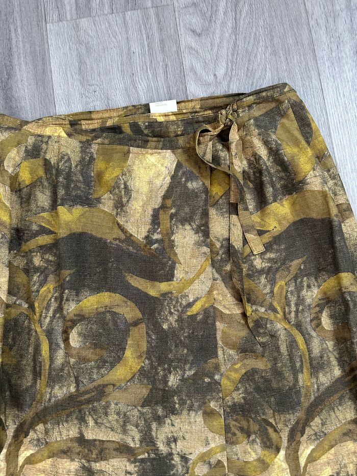 Jupe portefeuille kaki et beige en lin Vintage T48 4XL - photo numéro 3