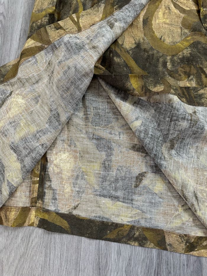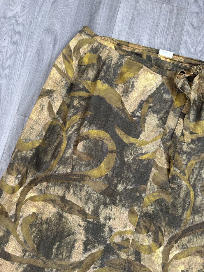 Jupe portefeuille - Excellent état - Taille 48 équivalent 4XL Dimensions en bas de l’annonce - Kaki et beige - Vintage, années 80’ - Coupe portefeuille - Se ferme avec un lien - Lin, viscose et modal Dimensions: - Entièrement réglable à la taille - 86cm de long