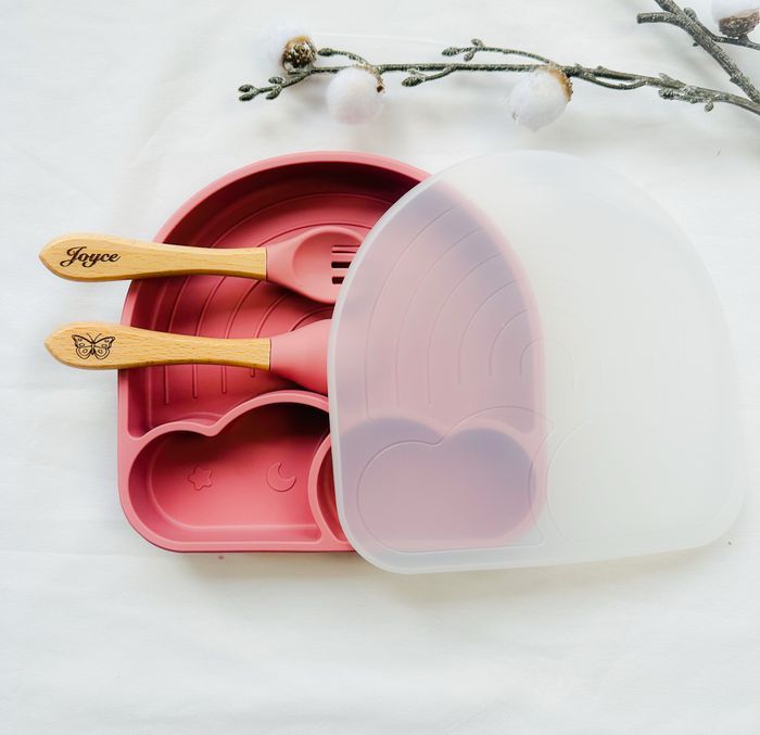 Assiette bébé en silicone personnalisée Couvert en bois personnalisée Différente couleur Neuf