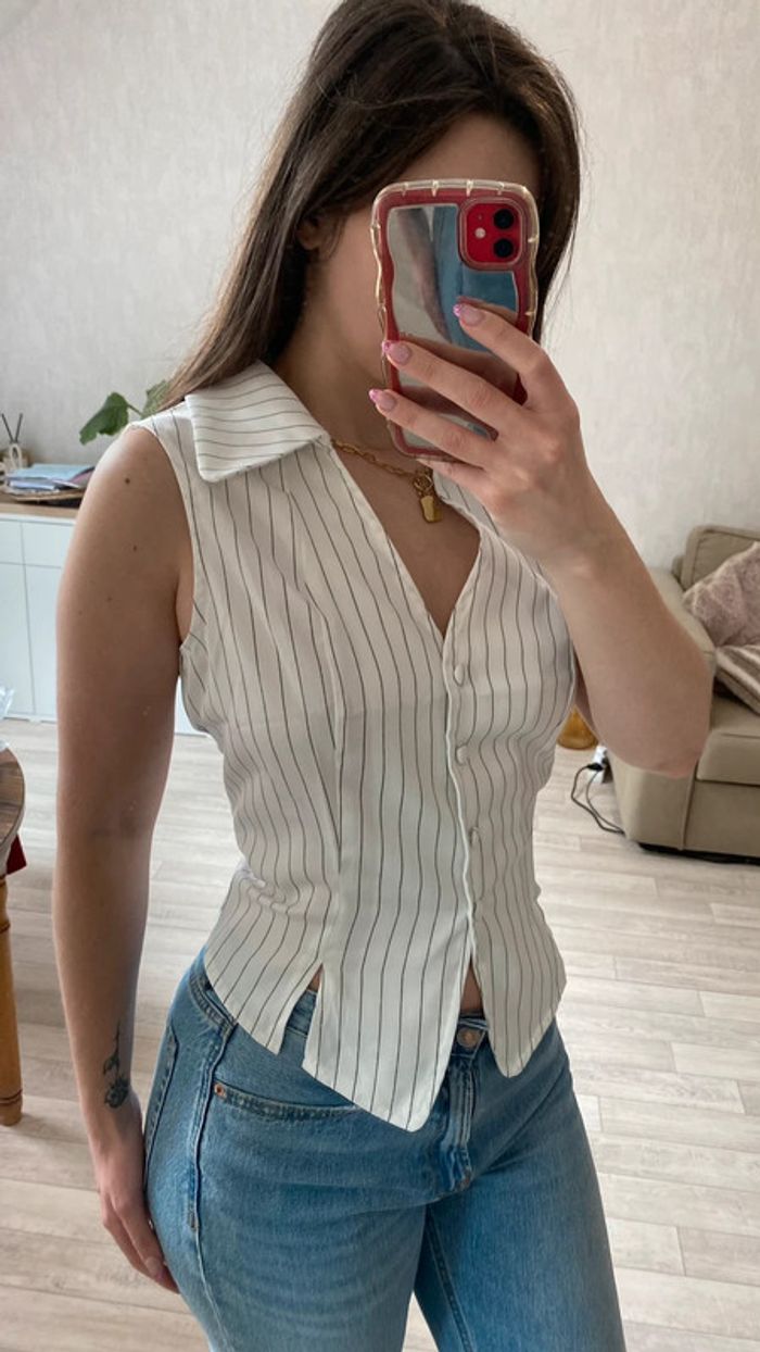 Chemise sans manches à rayures blanche - photo numéro 1