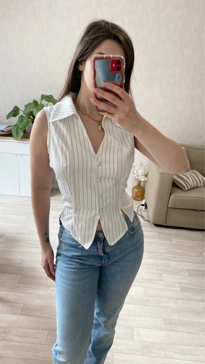 Chemise sans manches à rayures blanche - photo numéro 3