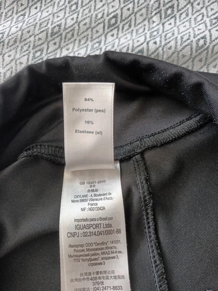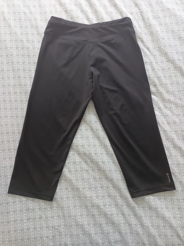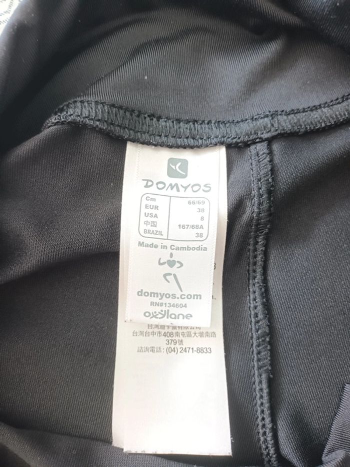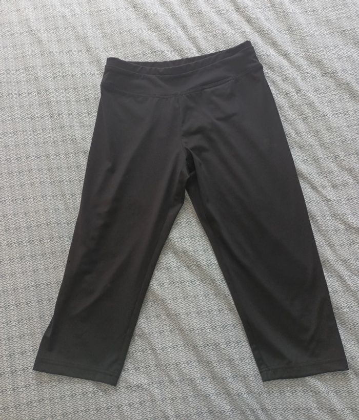 Legging noir de chez Décathlon. LOGO Equarea en bas à l'arrière. Matière 84% polyester et 16% élasthanne. Indiqué taille 38 mais taille petit correspond plus à un grand 36. Voici les dimensions : Largeur taille 32 cm (taille élastique), Hauteur totale 61,5 cm env. Peu porté. #corsairesportfemme3638 #leggingcourtfemme3638 #leggingnoirdomyos3638 #legginggenouxfemme3638
