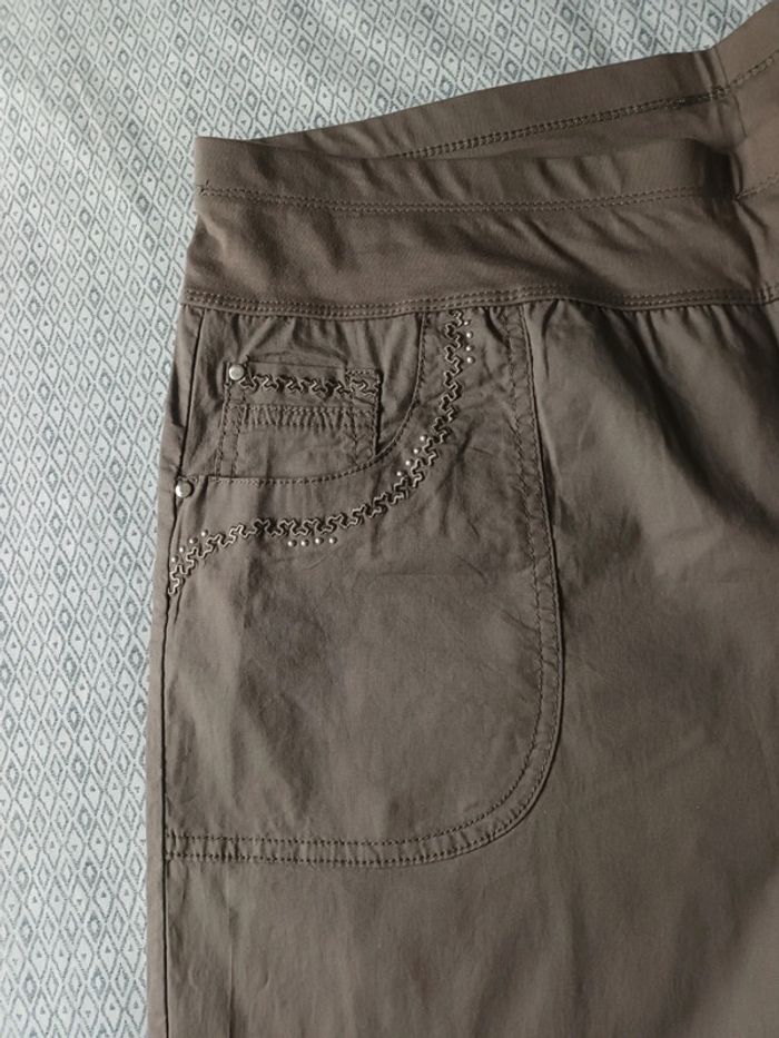 Pantacourt gris taupe avec détails brillants et broderies aux poches - photo numéro 2