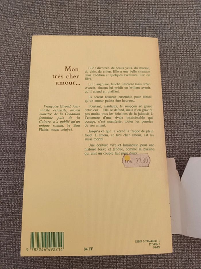 C'est l'histoire d'une femme moderne, très moderne. Elle est éditeur, lancée dans la vie parisienne, toujours entre deux avions. Elle rencontre Jerzy, un brillant avocat. Jerzy est un homme à femmes, épris de sa seule liberté, qui va entrer dans sa vie comme un ouragan et tout y bouleverser. ... Couverture un peu jaunie et autocollant à l'arrière de la première page sinon le reste est en excellent état. #livremontrescheramour #francoisegiroud #livrehistoiredamour