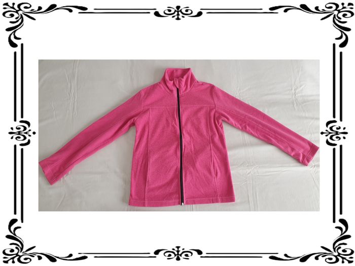 Gilet 14 ans. Gilet en polaire rose Une poche de chaque côté. 100 % polyester. Largeur d'épaule à épaule: 36,5 cm Largeur sous les bras: 43 cm Largeur à la taille : 42,5 cm Largeur en bas : de 43 cm Longueur totale : 54 cm Longueur des manches: 52,5 cm En bon état. Tissaia. 2,00€. #vero38110quatorzeansfille