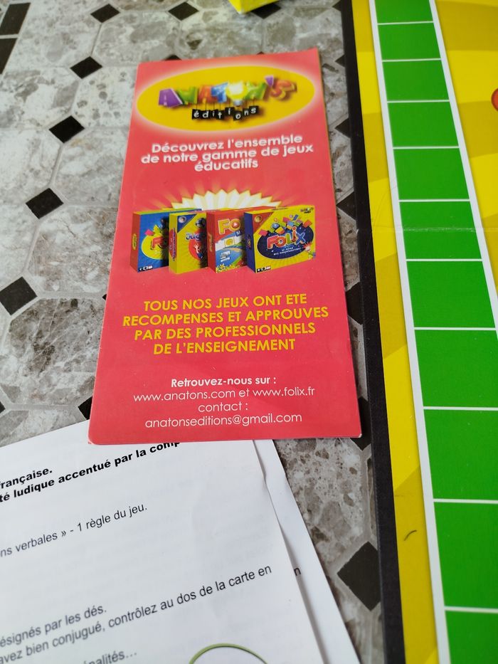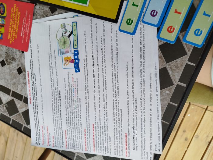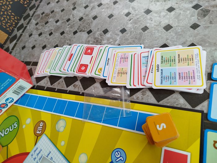 Tu as des lettres, des cartes et des dés.