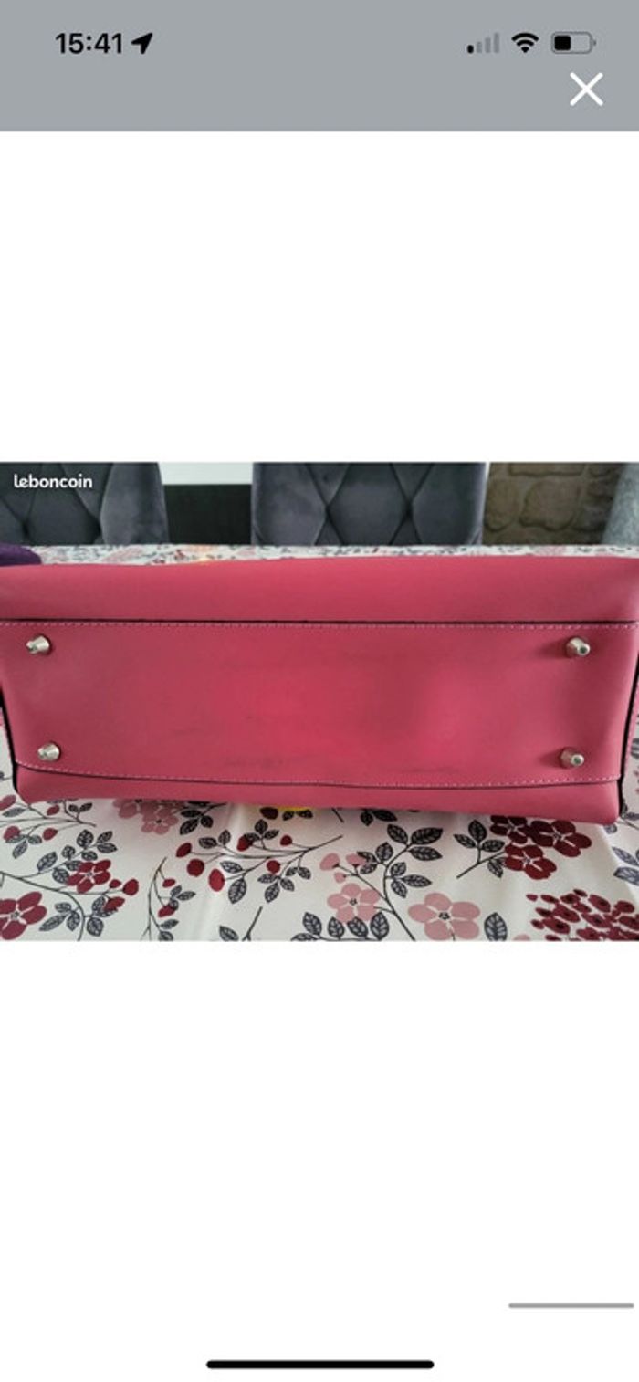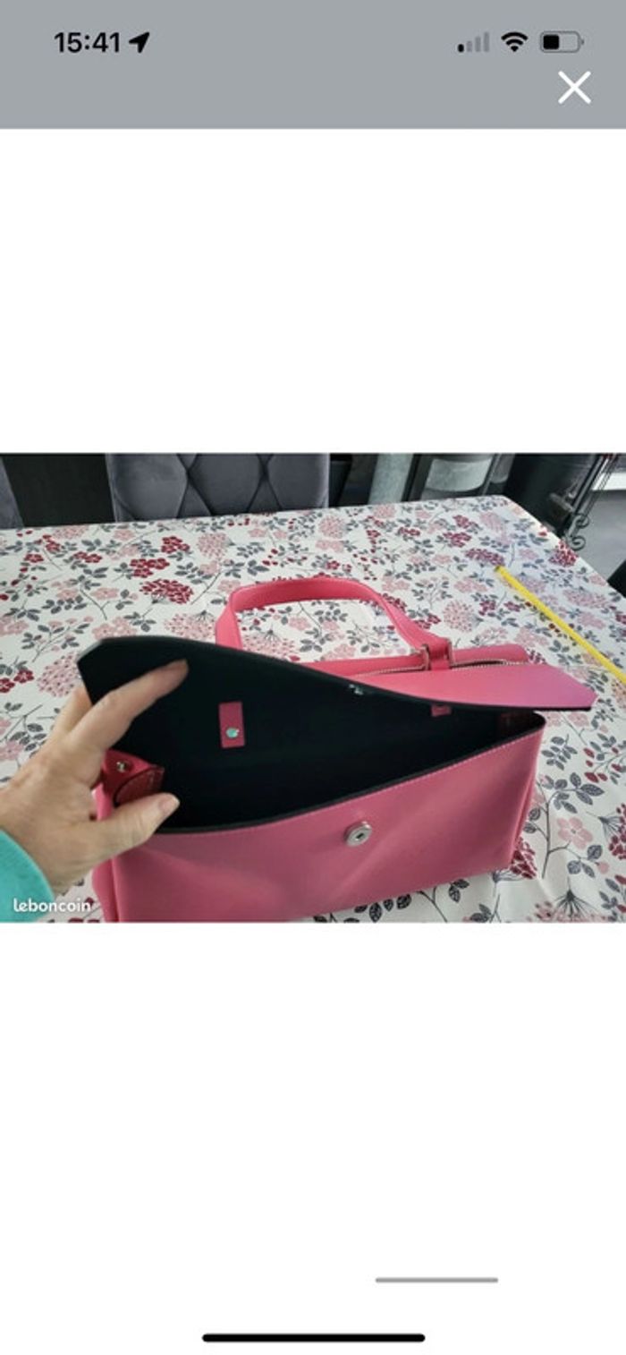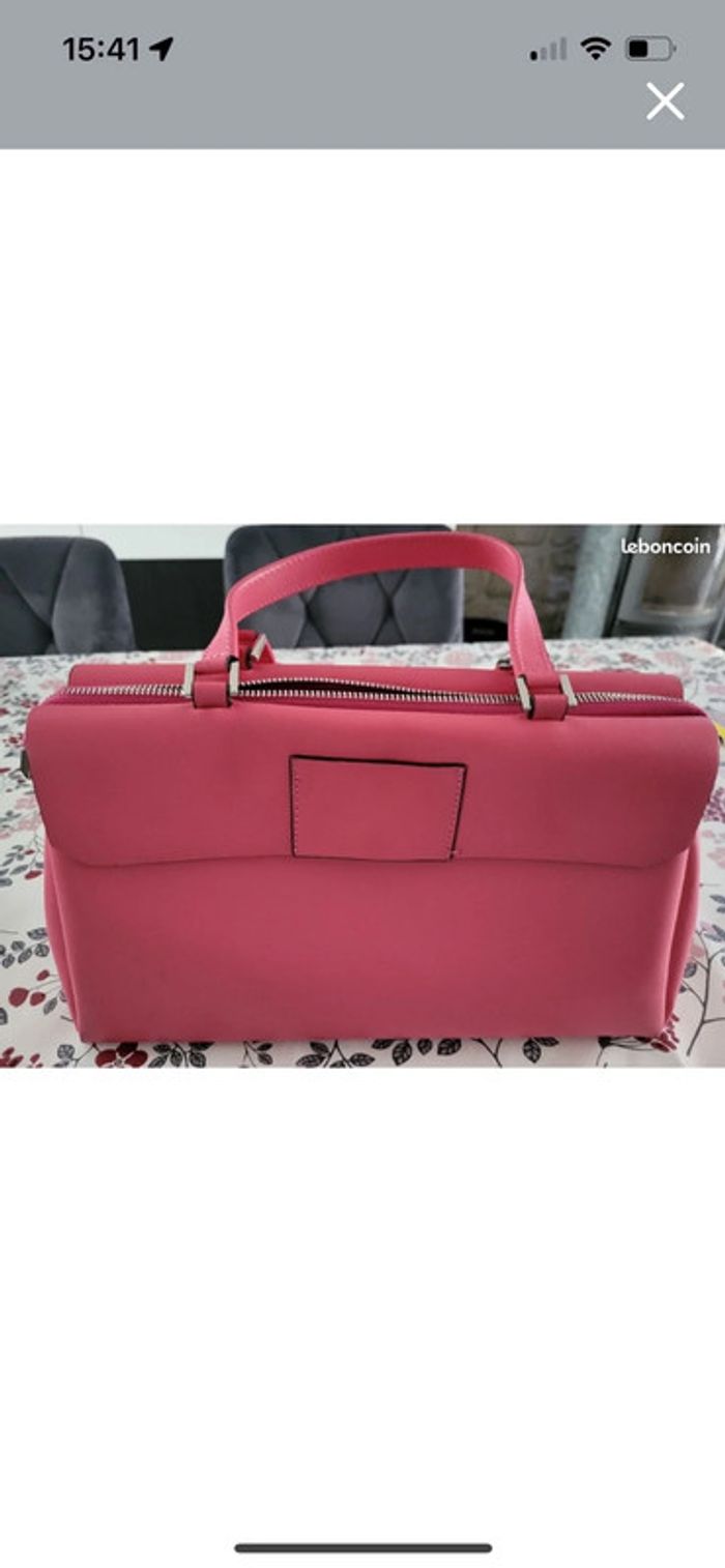 Sac à main rose en cuir, avec 2 grandes poches extérieures. 2 pochettes ouvertes à l'intérieur. Il n'est pas souple, mais peut contenir un trieur de sac au besoin. Acheté 68€ en maroquinerie Quelques traces, comme sur tous les sacs clairs, mais en très bon état #aliciabregerautre