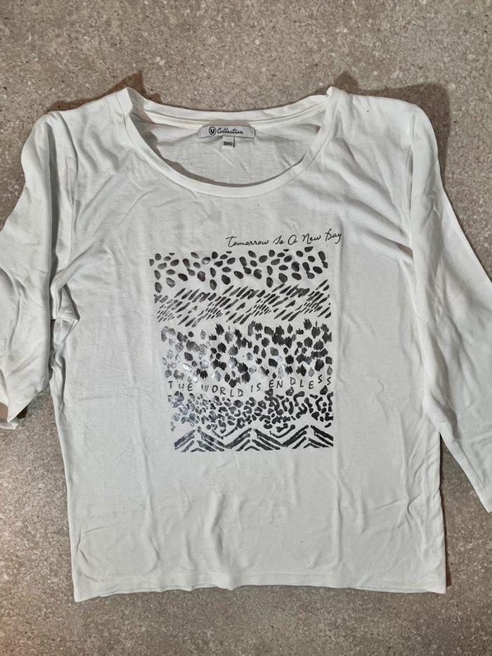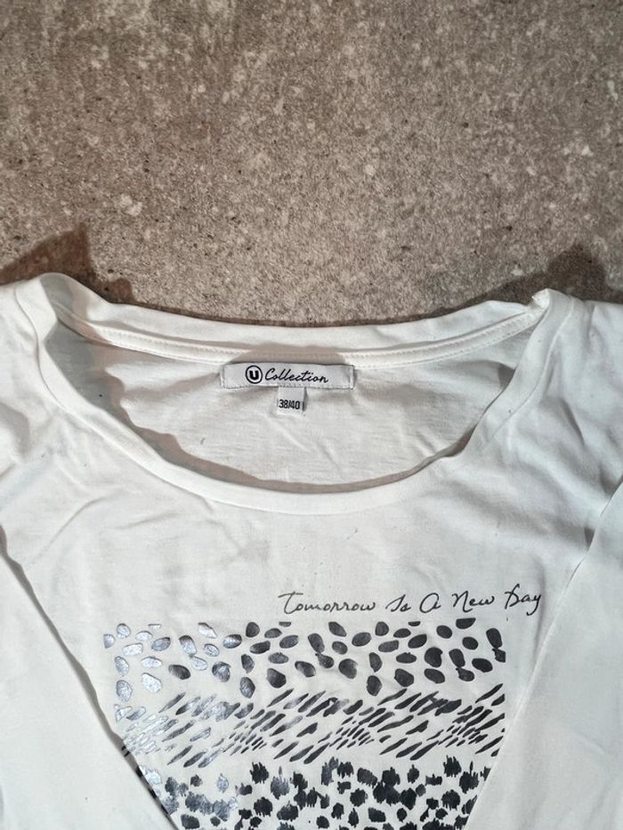 t-shirt femme blanc à motif taille 38-40 - photo numéro 1