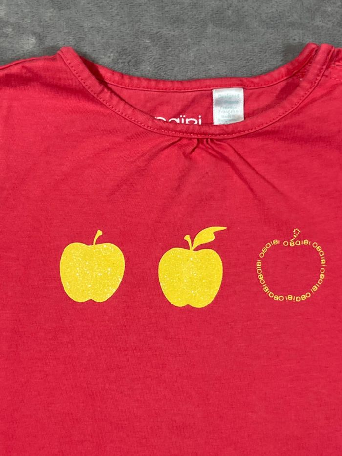 T-shirt fille rouge avec pommes jaunes – Taille 23 mois Obaidi