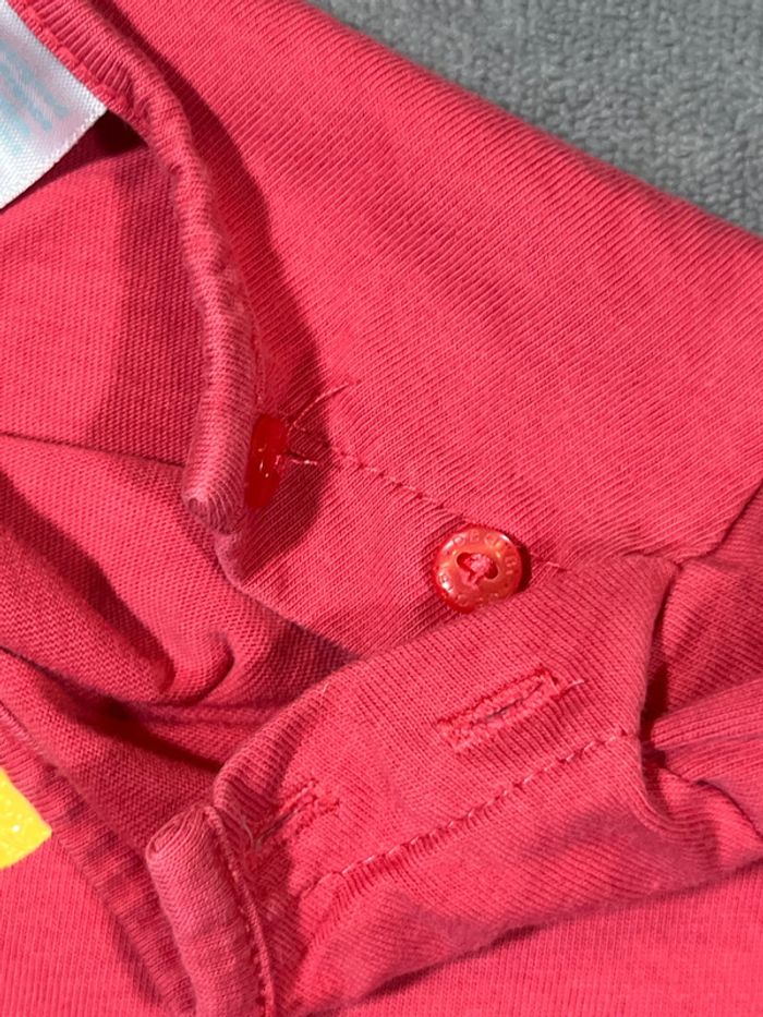 T-shirt original et coloré pour petite fille. Coloris rouge framboise avec trois pommes jaunes imprimées à l'avant : deux pommes pleines et une pomme composée de petits motifs circulaires. Manches courtes, col rond avec petit pli froncé au centre. 👧 Taille : 23 mois 🎨 Couleur : Rouge framboise avec motifs jaunes 🧵 Détails : Motif pommes, col froncé 📌 Marque : Obaidi 🧼 État : Très bon état – aucun défaut visible #TshirtFille #Obaidi #TshirtPommes #LookFruitÉté #ModeEnfant #VêtementsFille #2ans #VintedEnfant