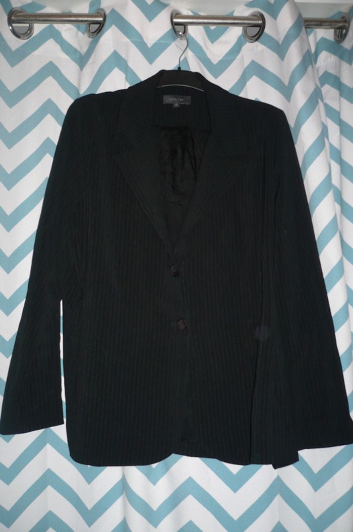 Veste droite de tailleur noire avec liserés. Taille 42, elle est en très bon état mais la doublure intérieur est abîmée au niveau des aisselles. #femmesaintjean45