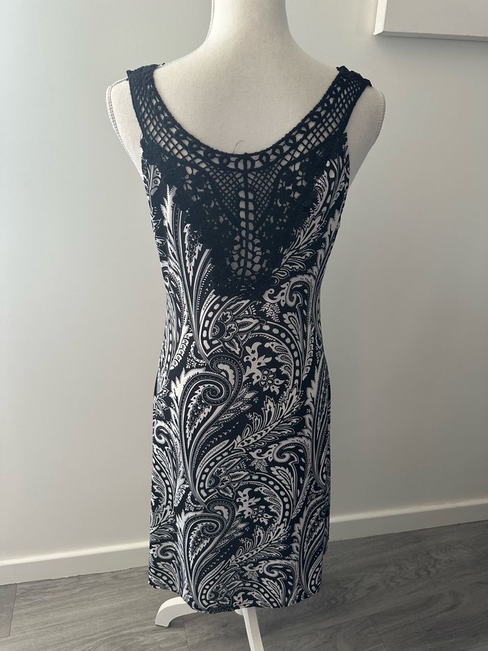 Robe noire et blanche paisley dentelle T38 M - photo numéro 2