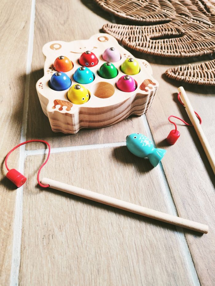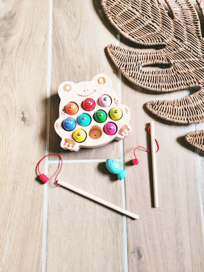 🎣 Pêche à la ligne magnétique aimantée forme grenouille avec poissons en bois JB1100 🎀Convient dès l'âge de 2 ans sous surveillance 🎀Une superbe partie de pêche s'engage c'est parti. Attrapez les petits poissons avec les cannes à pêche aimantées 🎀Objectifs ▶️Dextérité, motricité fine ▶️Coordination main/oeil ❇️N'hésitez pas à créer un lot pour économiser sur les frais de port❇️ Premier âge, Jouet bébé, Jouet d'activité, Jouet ludique, Jouet eveil, Mémorisation, Memoire, aptitude, motricité, jeu Adresse, Montessori, jeu bois, Jouet bois, Jouet vintage, Jeu adresse, jeu apprentissage, dextérité, jeu sensorielle, jeu educatif, activités et Jouet pour bébé, trier empiler, encastrer, jeux et jouets