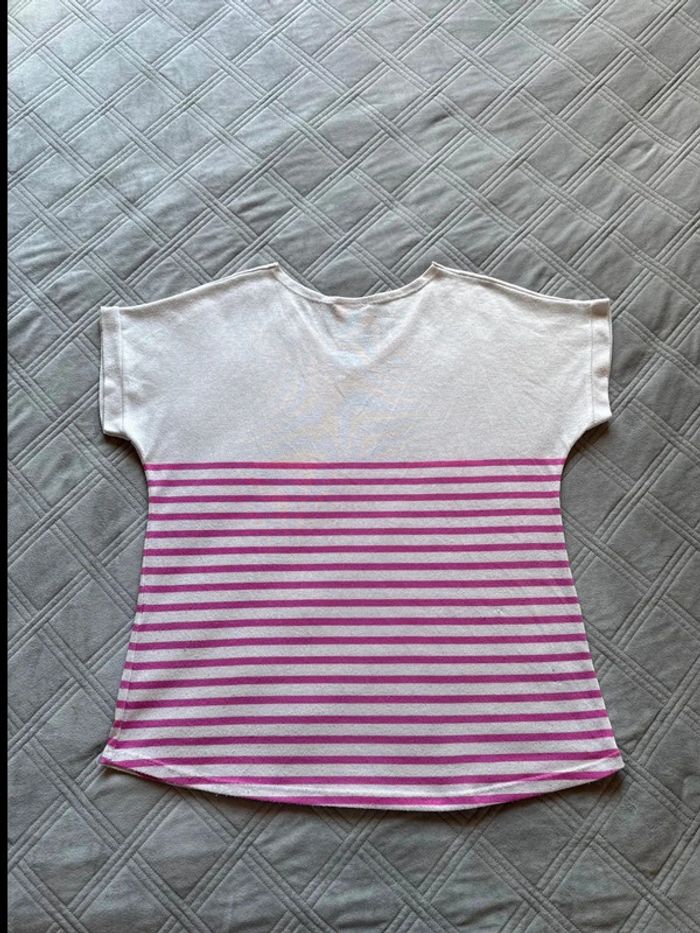 T-shirt femme rayé rose et blanc – Taille M/L  - Très bon état - photo numéro 4