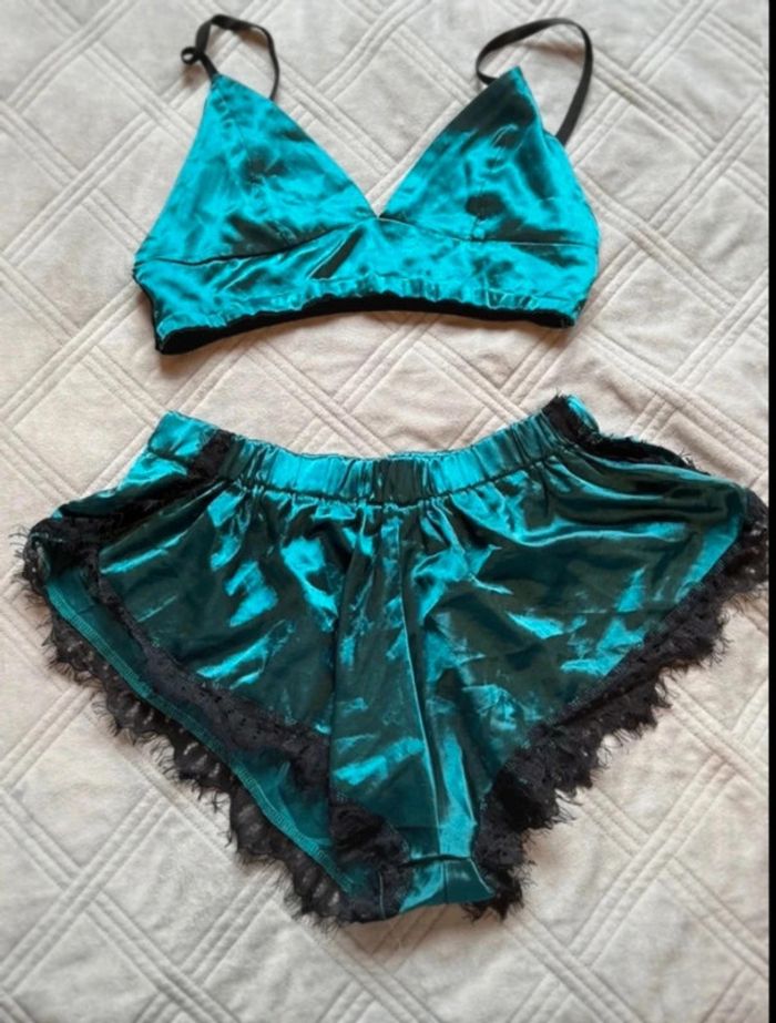 Ensemble brassière et short bleu et noir - taille M - très bon état - photo numéro 2