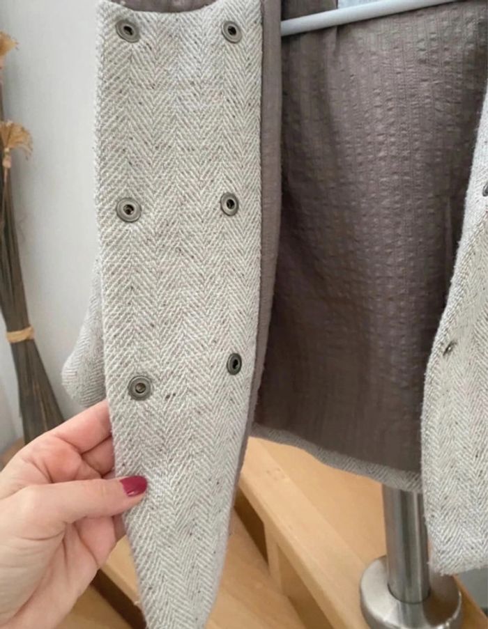 Joli manteau à chevrons et pompom blanc cassé crème - photo numéro 3
