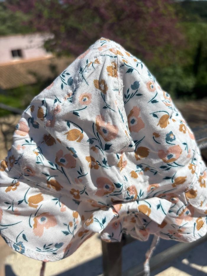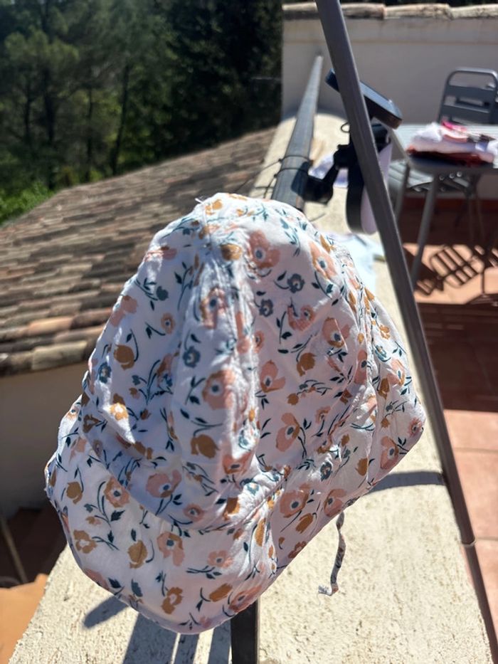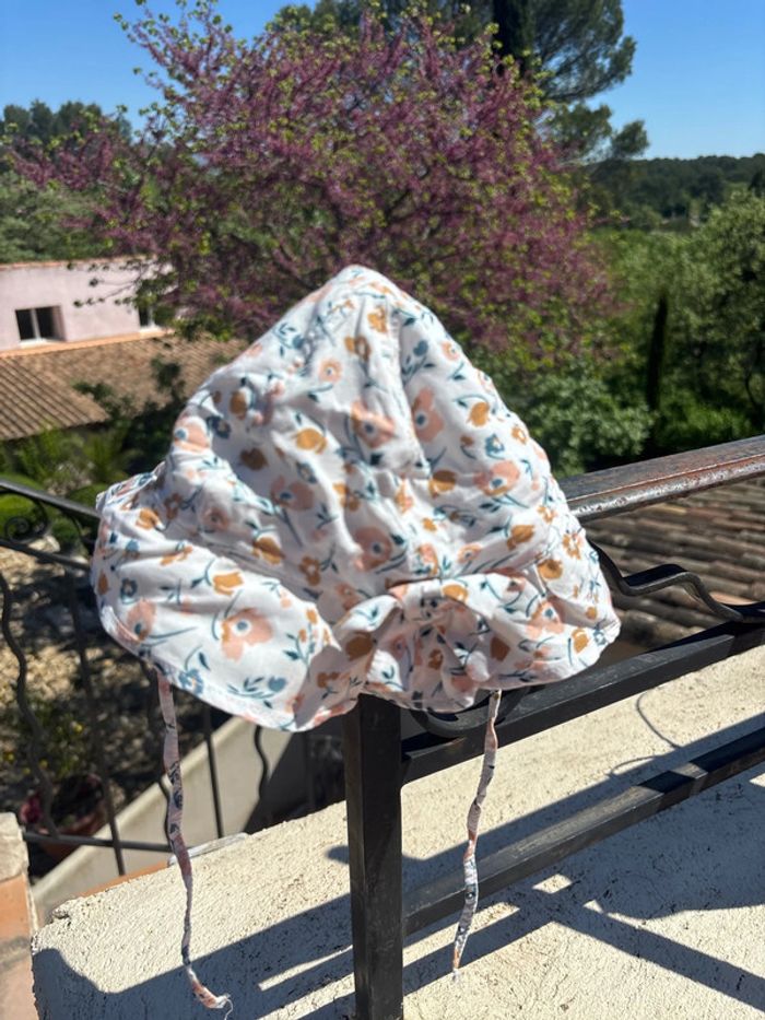 Chapeau en coton léger avec cordon pour attache. État parfait sans trou ni tache. Maison non fumeur. Envoi rapide