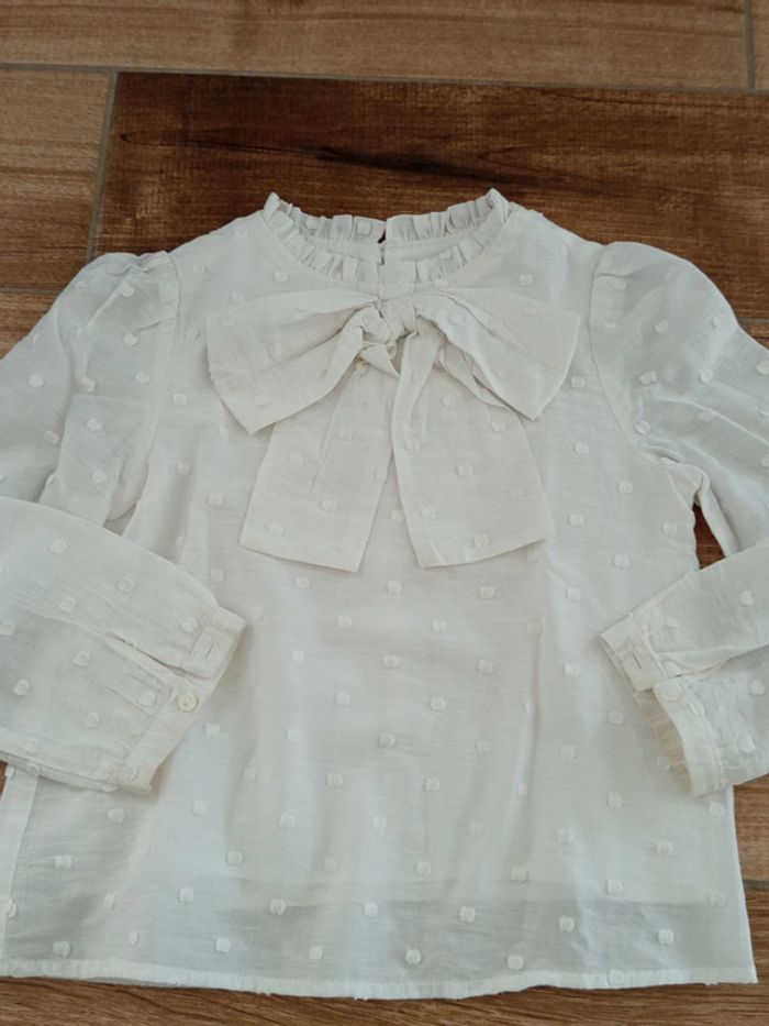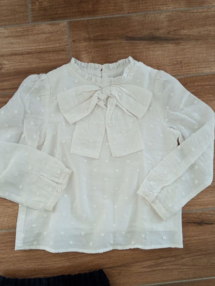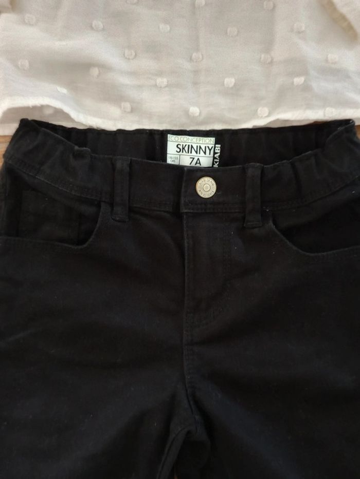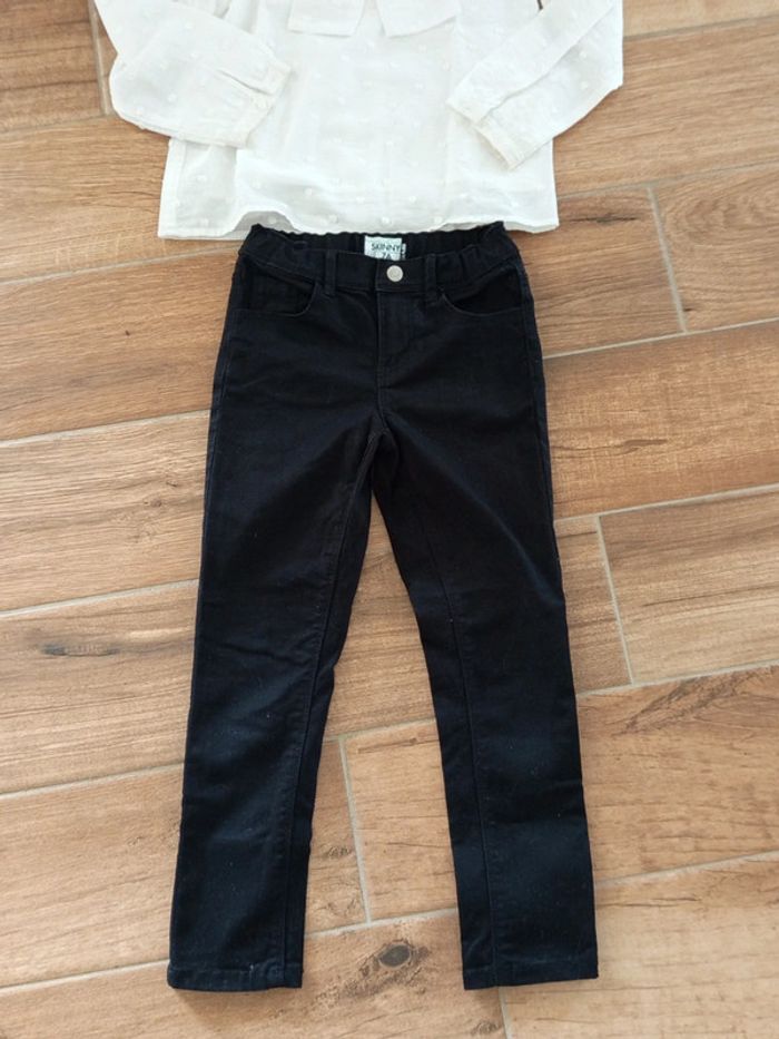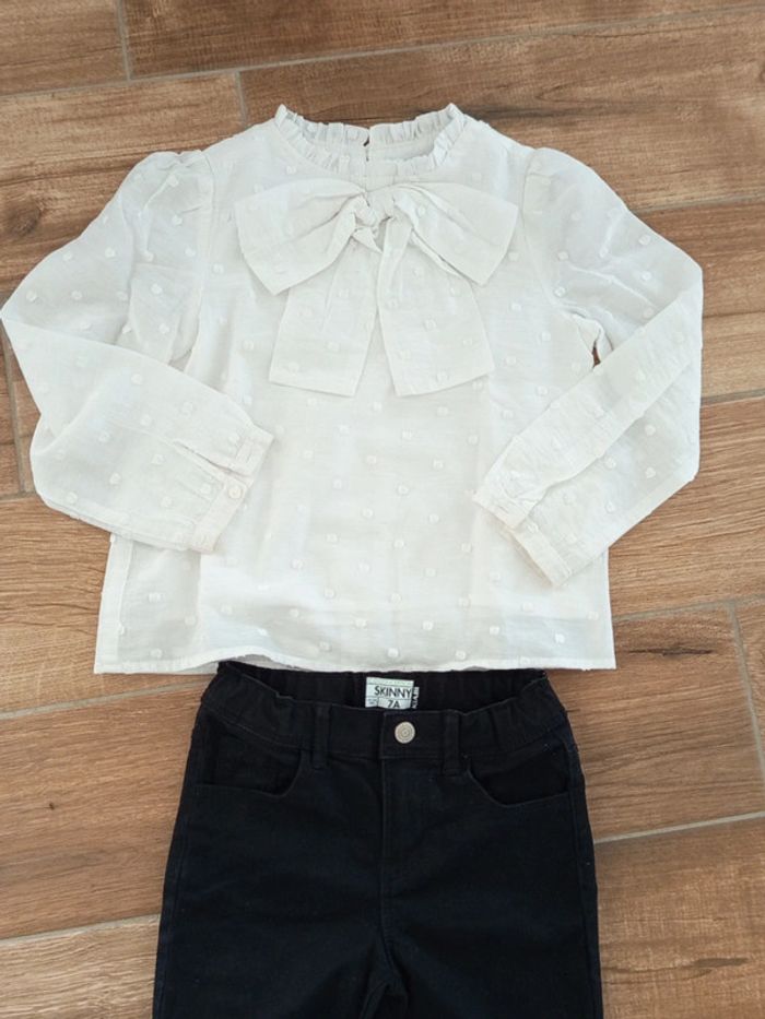 Ensemble 7 ans, jean slim noir et blouse noeud plumetis Zara