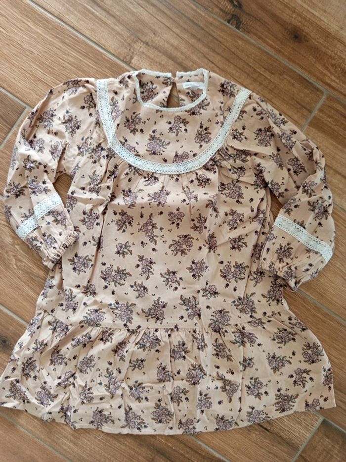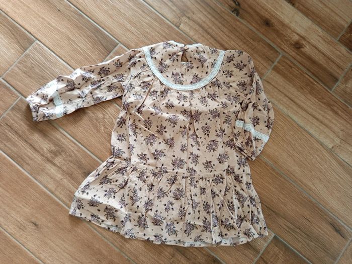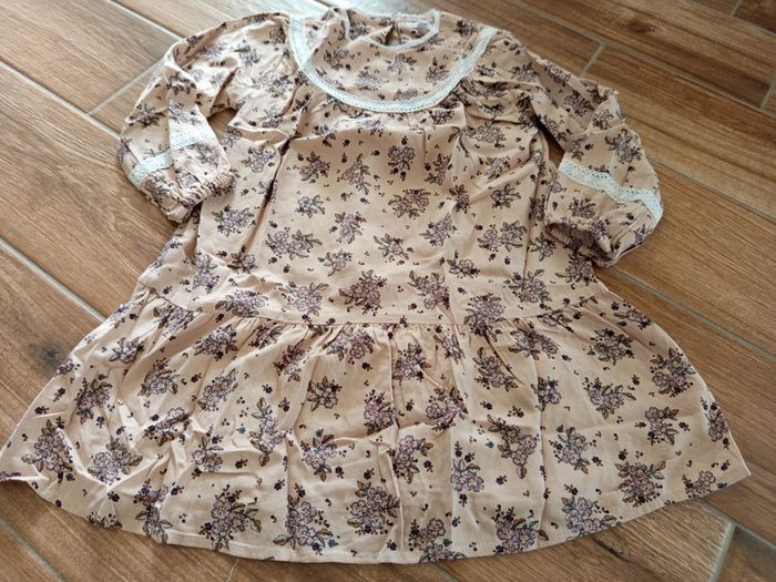 Robe liberty beige et parme style vintage détail dentelle. 6 ans - photo numéro 1
