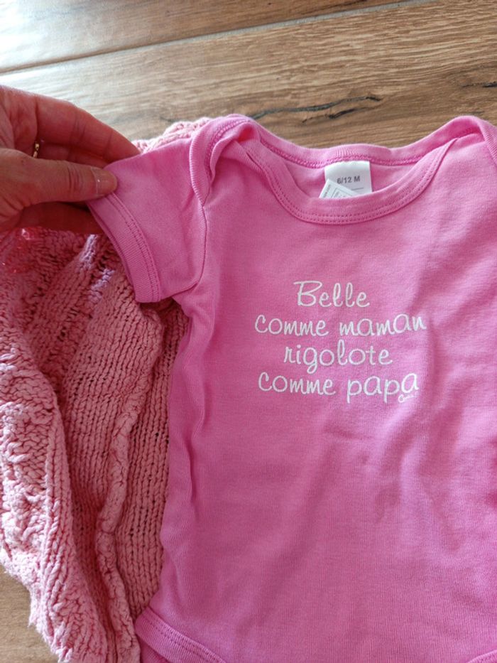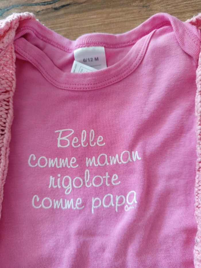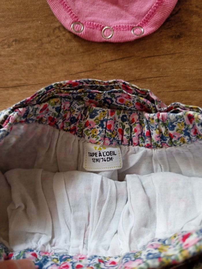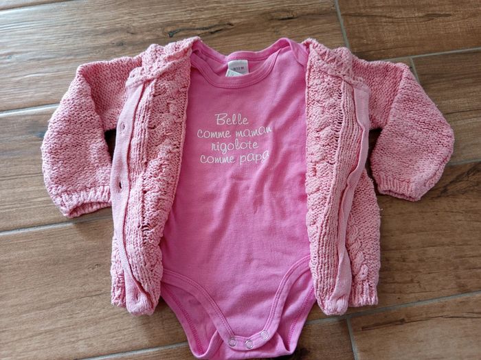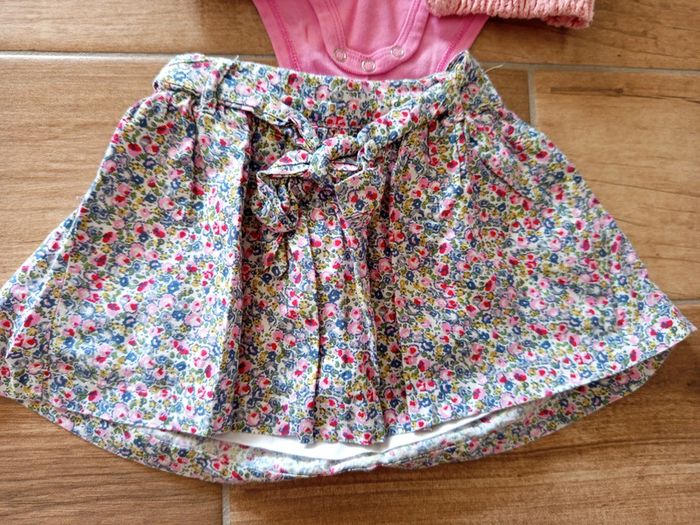 Ensemble 12 mois. Jupe liberty+ body rose+ gilet torsadé - photo numéro 11