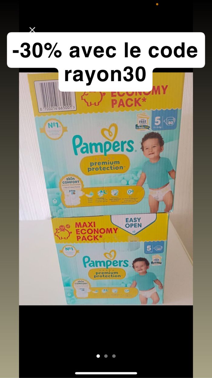Le lot de deux paquets de couches Pampers premium protection taille 5