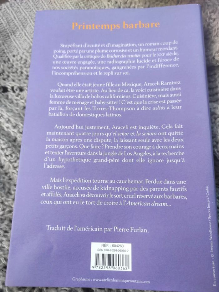 Roman printemps barbare, en très bon état général sauf le coin en bas des pages taché (les pages ne sont pas ondulées)