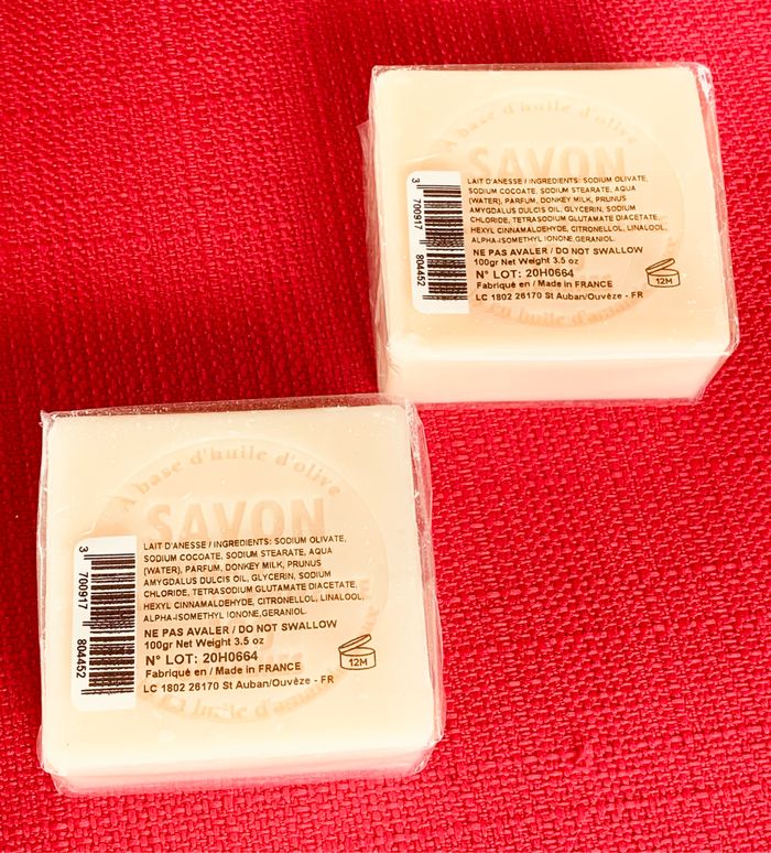 Lot 2 savons de Lait d'Anesse, 1802 Le Chatelard. Made in France Sans huile de palme. 100g chacun il convient aux peaux sensibles comme aux peaux normales. Neuf, encore en blister d’origine ⛔️ Prix FIXES, NON négociables 🚨  👏🏻 Réductions sur les lots 👍🏻 #savon #anesse #lechatelard #jabon #laitdanesse #cc_divers