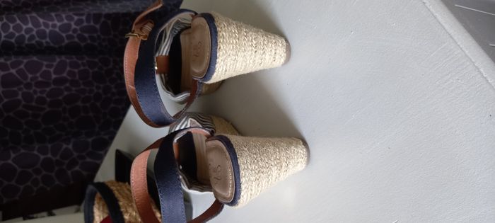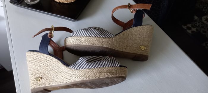 Chaussures Tom Tailor Semelles compensées Rayées bleu marine et beige style marin Pas de traces d’usure Pointure 40 #chaussures_imoddeco