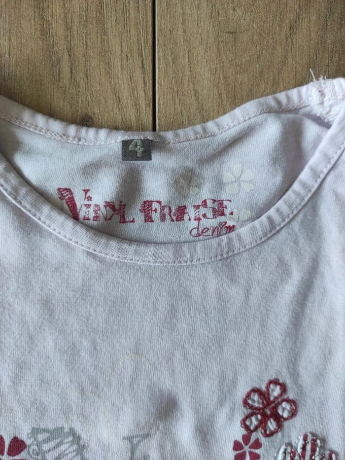 Tee-shirt MC 4 ans vinyl fraise denim en bon état #4ansmarygio59fille