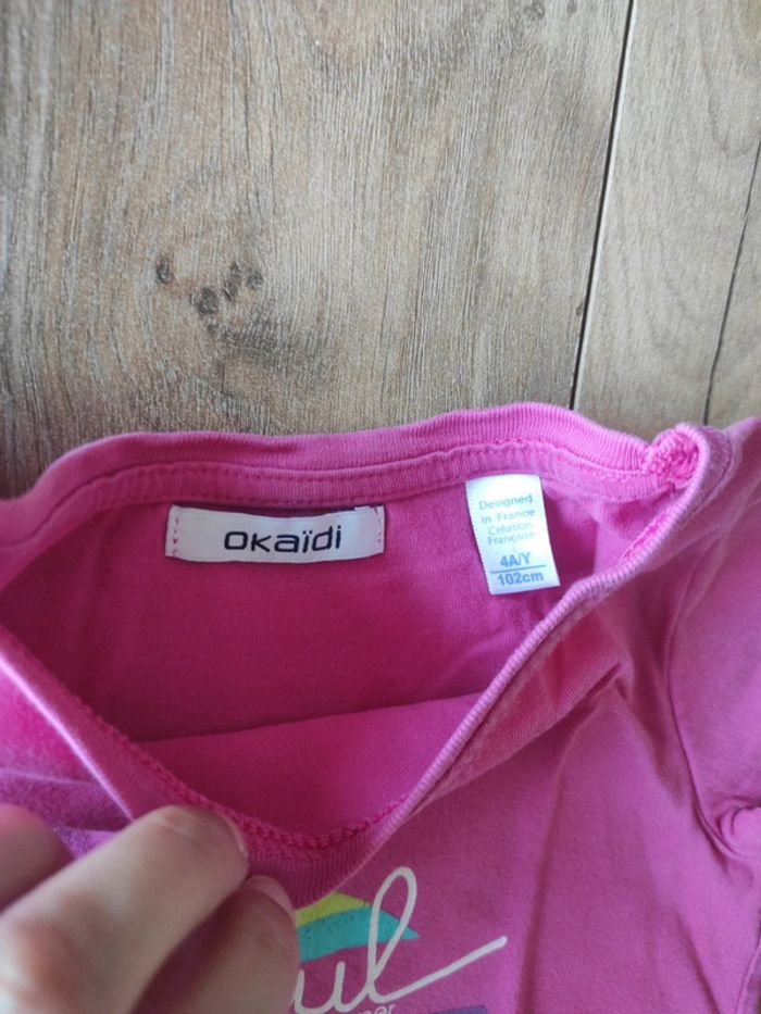 Tee-shirt Okaïdi 4 ans en bon état car le dessin commence très légèrement à s'enlever #4ansmarygio59fille