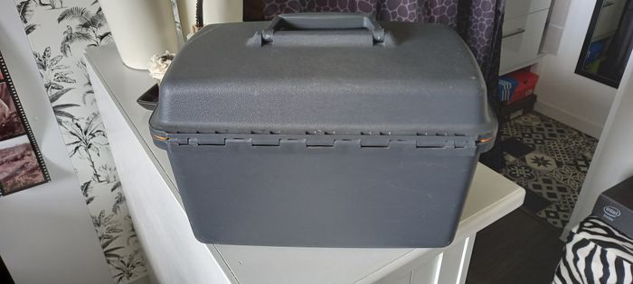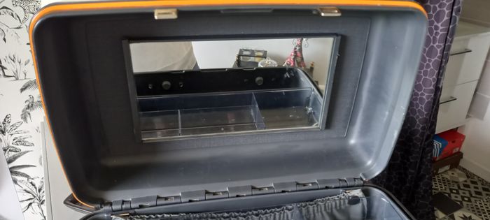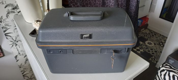 Vanity Delsey Visa vintageVanity Delsey Visa vintage Plastique rigide gris foncé Plusieurs casiers compartiments 1 pochette tissu amovible 1 casier plastique amovible 1 miroir Un jeu de 2 clés Dimensions 40 /25 / 25 cm Très bon état général Mis à part une rayure sur le dessus #accessoires_imoddeco