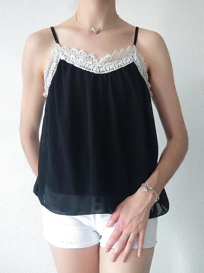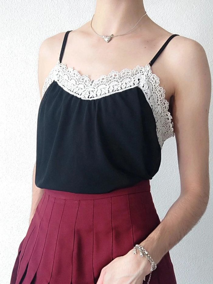 Débardeur noir col dentelle blanc / Jie - 36/S à 38/M - photo numéro 1