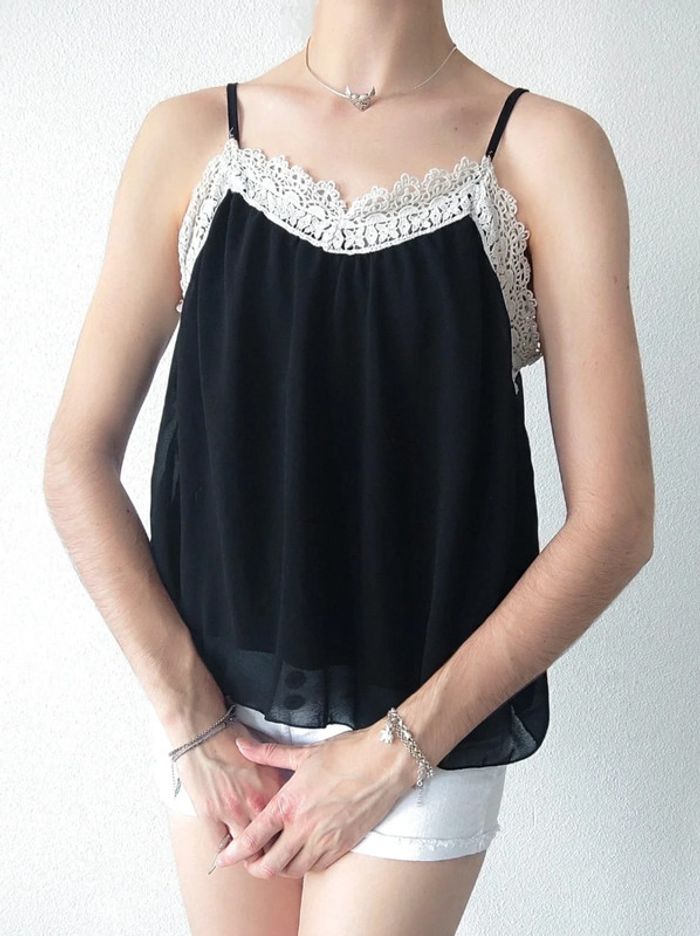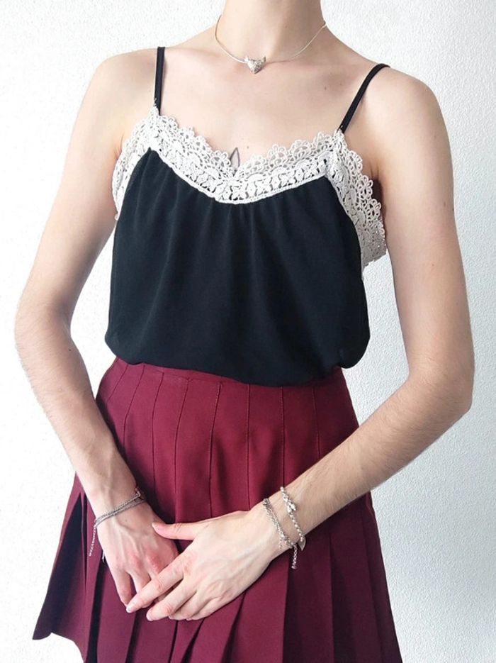 ♣️ Vendeuse Éco-Responsable ♣️ ⬇️ Toutes les informations sur l'article ⬇️  ⁠෴﹏෴﹏෴﹏෴﹏෴﹏෴ 💸 ℝ𝕖́𝕕𝕦𝕔𝕥𝕚𝕠𝕟𝕤 𝕤𝕦𝕣 𝕝𝕖𝕤 𝕃𝕠𝕥𝕤 💸 🌱 𝟐 𝐚𝐫𝐭𝐢𝐜𝐥𝐞𝐬 : -5% ☘️ 𝟑 𝐚𝐫𝐭𝐢𝐜𝐥𝐞𝐬 : -10% 🍀 𝟓 𝐚𝐫𝐭𝐢𝐜𝐥𝐞𝐬 : -15% 🌿 𝟏𝟎 𝐚𝐫𝐭𝐢𝐜𝐥𝐞𝐬 : Réduction supplémentaire  ⁠෴﹏෴﹏෴﹏෴﹏෴﹏෴ 🗂️ 𝗖𝗮𝘁𝗲́𝗴𝗼𝗿𝗶𝗲 : #flocofemme36 #flocofemme38 📏 𝗧𝗮𝗶𝗹𝗹𝗲 : 36/S , 38/M (estimation) 🏷️ 𝗠𝗮𝗿𝗾𝘂𝗲 : JIE 🎨 𝗖𝗼𝗹𝗼𝗿𝗶𝘀 : Noir, blanc 🏁 𝗧𝗵𝗲̀𝗺𝗲 / 𝗠𝗼𝘁𝗶𝗳 : Uni, dentelle, broderie, fleur, ornement, ajouré 🧵 𝗖𝗼𝗺𝗽𝗼𝘀𝗶𝘁𝗶𝗼𝗻 : Tissu 1 : 95% Polyester, 5% Élasthanne / Tissu 2 : 95% Viscose, 5% Élasthanne 🌍 𝗣𝗮𝘆𝘀 𝗱𝗲 𝗙𝗮𝗯𝗿𝗶𝗰𝗮𝘁𝗶𝗼𝗻 : Non mentionné ❌ 𝗗𝗲́𝗳𝗮𝘂𝘁(𝘀) : Aucun 📜 𝗗𝗲́𝘁𝗮𝗶𝗹𝘀 𝘀𝘂𝗽𝗽𝗹𝗲́𝗺𝗲𝗻𝘁𝗮𝗶𝗿𝗲𝘀 : Fines bretelles. Doublure. Tissu fluide, voile. Col V échancré ෴﹏෴﹏෴﹏෴﹏෴﹏෴ 🌈 𝑴𝒆𝒔 𝒎𝒆𝒏𝒔𝒖𝒓𝒂𝒕𝒊𝒐𝒏𝒔 : - 1m82 / 182 cm - Hanche ≈ 85 cm - Taille ≈ 74 cm - Bonnet A ෴﹏෴﹏෴﹏෴﹏෴﹏෴ 🛍️ 𝐷𝑟𝑒𝑠𝑠𝑖𝑛𝑔 𝑑𝑒 : #anaisd Gothic chic classe romantique vintage rétro coquette witch dark academia fairycore lolita glamour