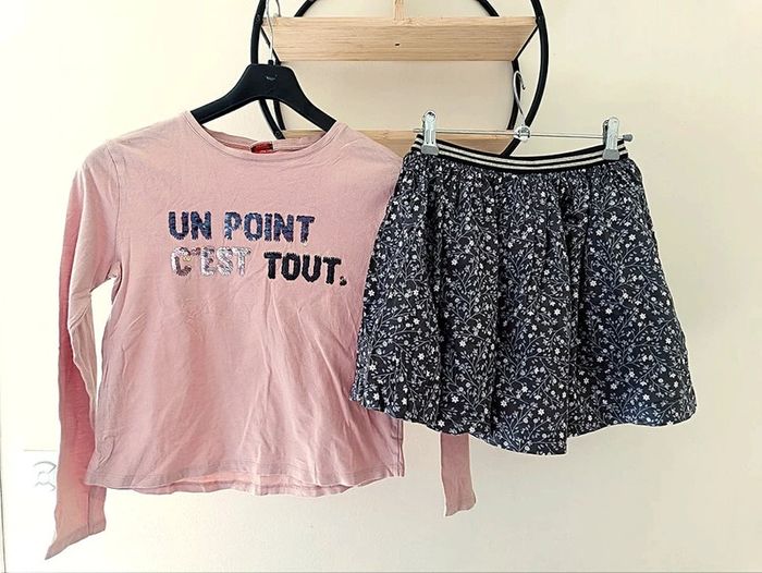 12 ans ensemble teeshirt tape a l'oeil et jupe Okaïdi