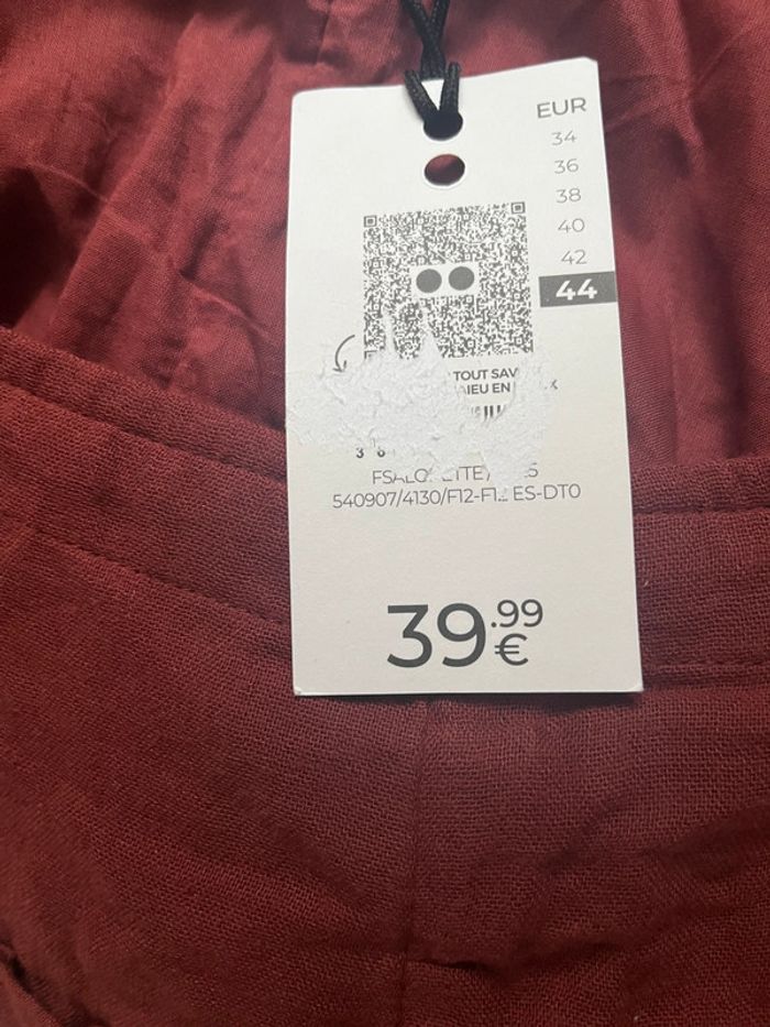 Combi short bordeaux taille 44, 100 % coton T-shirt noir non fourni