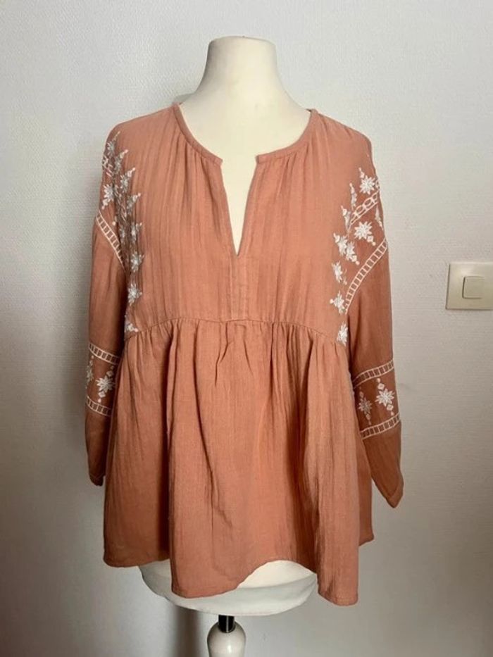 Blouse, chemisier corail, saumon taille L, 100% coton
