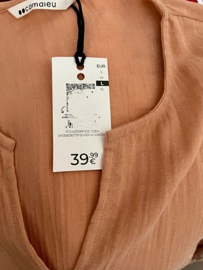 Blouse, chemisier corail, saumon taille L,  100% coton - photo numéro 3