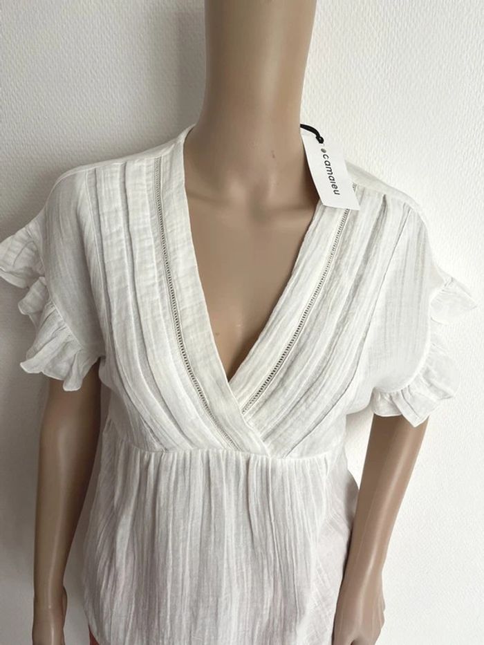 Blouse, chemisier, tunique blanc écru, 100 % coton taille XL - photo numéro 2