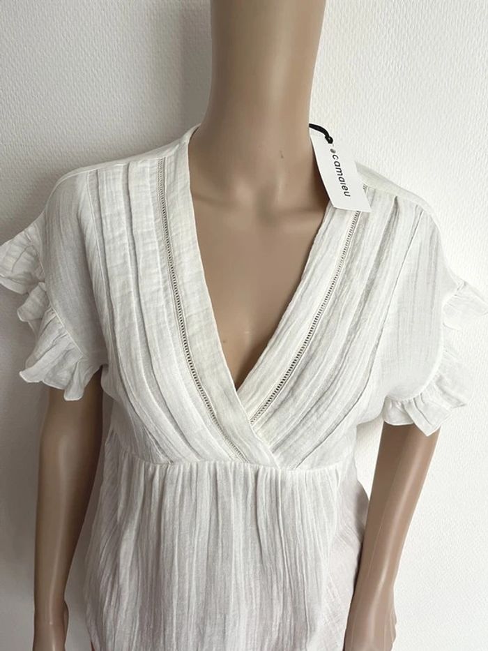 Blouse, chemisier, tunique blanc écru, 100 % coton taille S - photo numéro 2