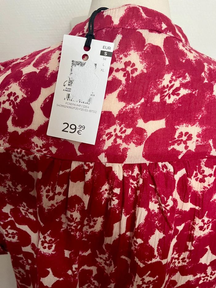 Blouse, chemisier fleuri rose fuchsia taille S - photo numéro 4