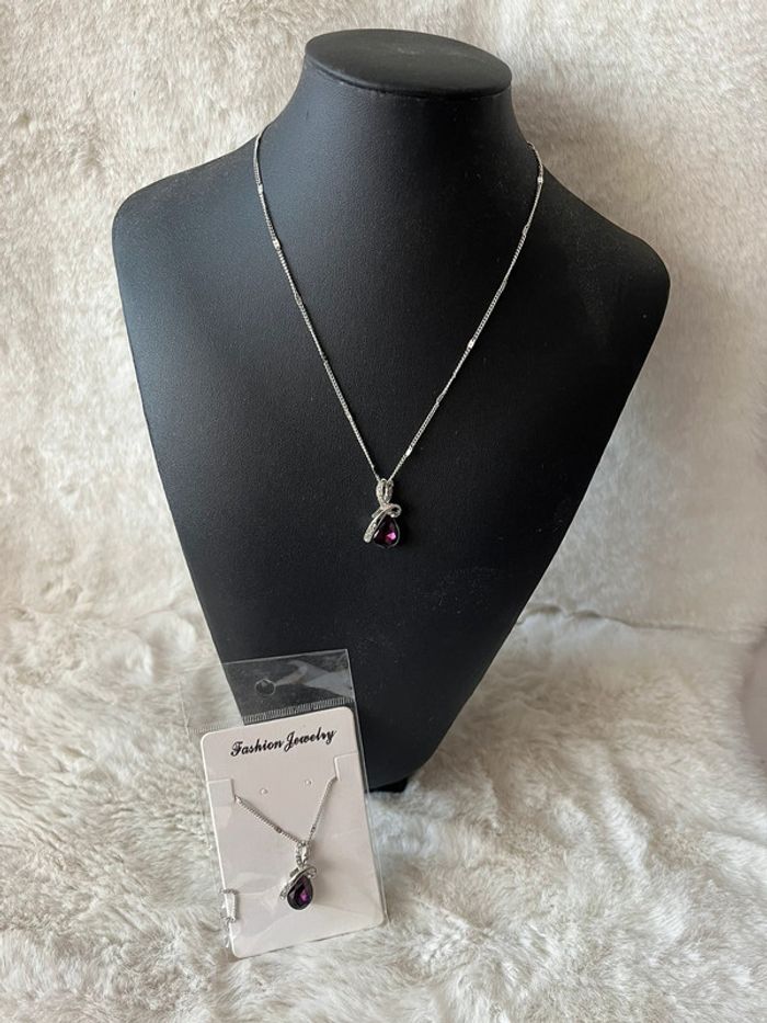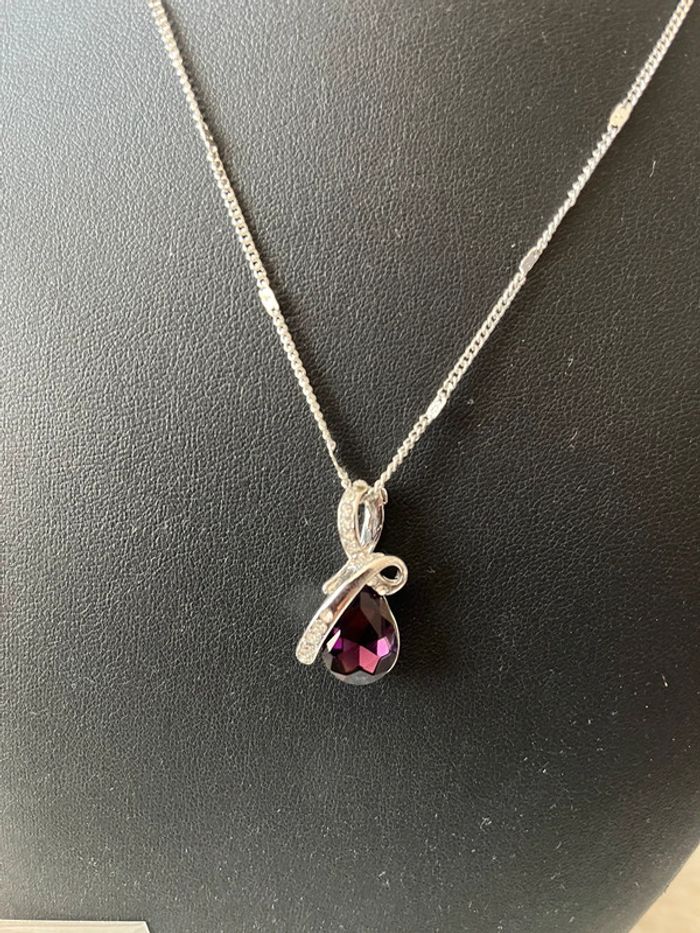 Collier argenté et pendentif violet - photo numéro 1