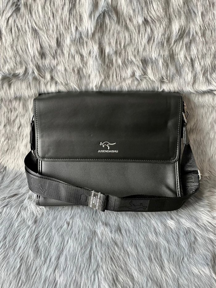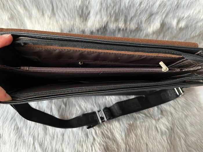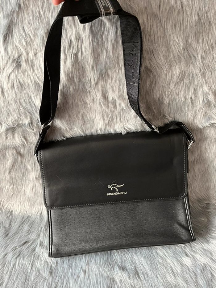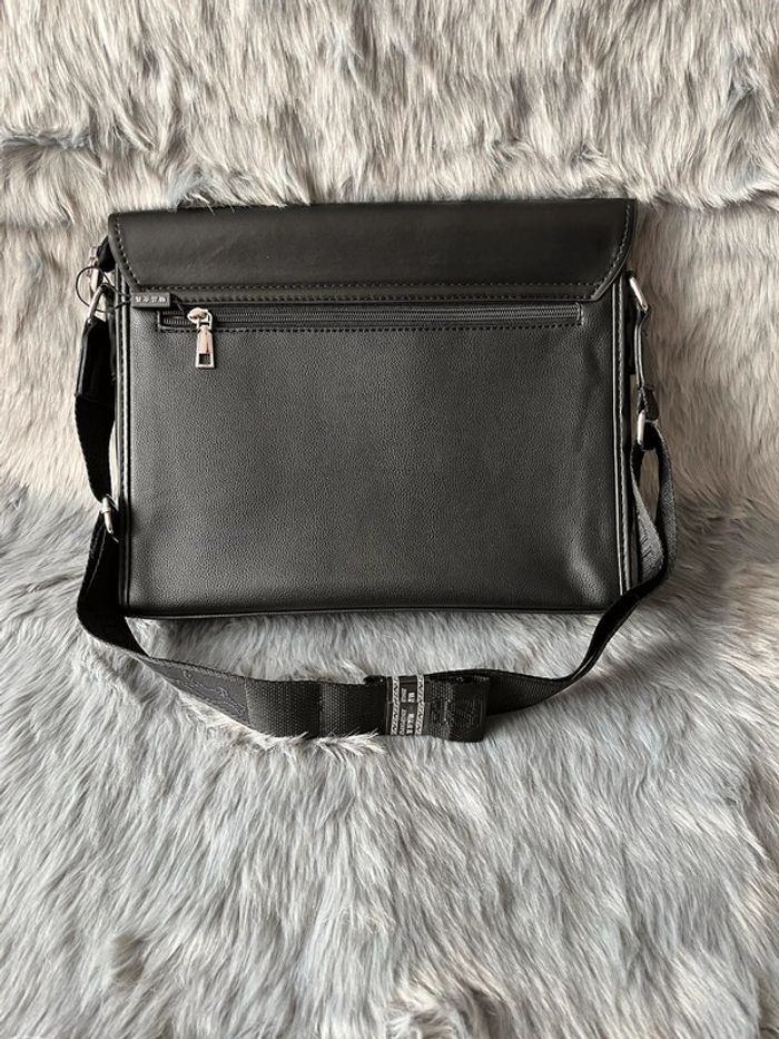 Sacoche en cuir noire a bandoulière homme cuir Porte-documents, cuir PU et doublure intérieure en polyester Taille: 32*25cm Jamais utilisée, sangle non déballée