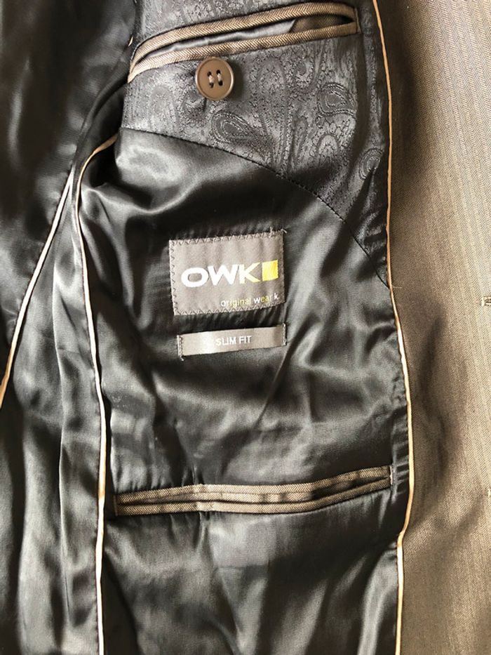 marque OKW (la halle ou gemo) l’étiquette a été enlevée mais taille 40 couleur brun/noir avec rayures verticales ton sur ton coupe slim fit peut être vendu avec ou sans le pantalon (autre annonce)