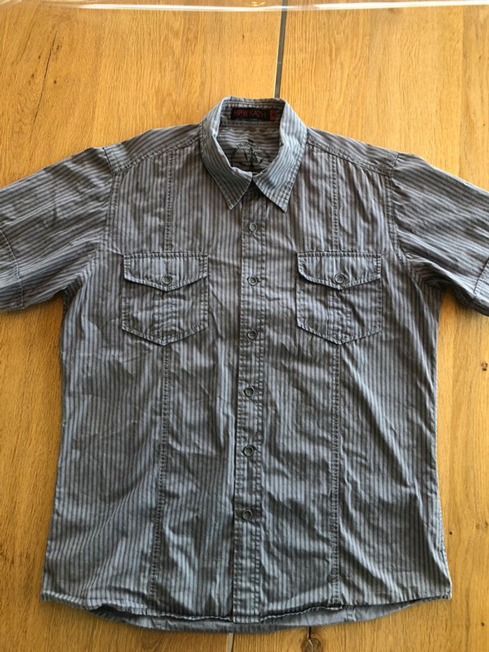 chemise grise rayé noir bon bon état, pas de tache ou défaut