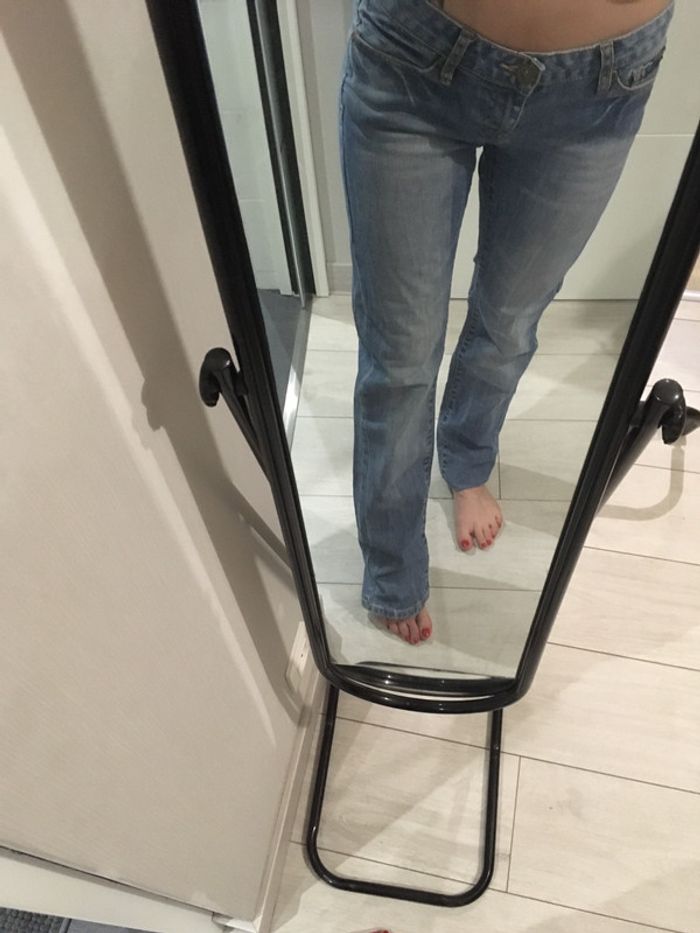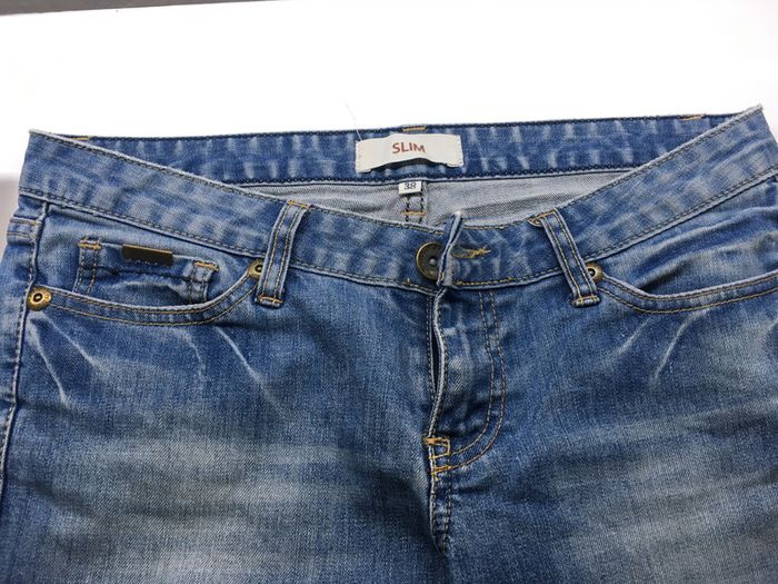 taille 38, coupe « slim » mais bas pas du tout serré, plutôt coupe droite bon état, peu porté car un peu grand pour moi