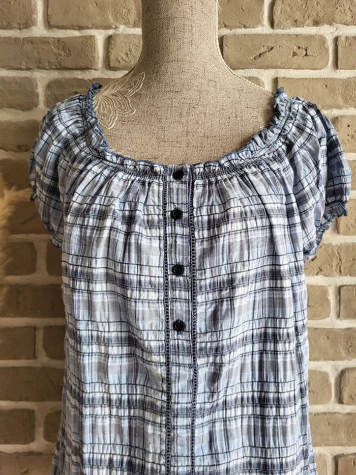 Blouse à carreaux bleu style cottagecore - Burton - photo numéro 2