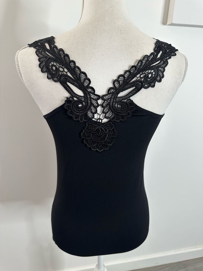 Débardeur noir en dentelle et broderies Rodier T42 XL